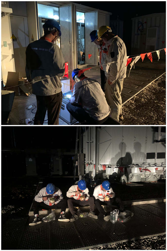 6月20日晚9點(diǎn),正在風(fēng)電施工現(xiàn)場(chǎng)忙碌的公司青年突擊隊(duì)突然接到業(yè)主緊急通知,今晚必須完成升壓站兩根電纜的電纜耐壓試驗(yàn)。為了不影響送電時(shí)間,按時(shí)完成工作任務(wù),青年突擊隊(duì)兵分兩隊(duì),一隊(duì)帶著設(shè)備去做電纜試驗(yàn),一隊(duì)繼續(xù)完成剩余工作任務(wù)。