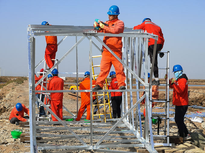 “他們這么年輕,沒有經(jīng)驗,能爬這么高的電桿么?”臺南供電所負責人趙勇對他們爬桿作業(yè)倍感擔心。在15米高的電桿前,青年突擊隊們二話不說,穿上腳扣,戴上保護手套,系好安全帶,動作干脆利落,三下五除二就爬到了桿頂,在隊長孫迎照的指揮下開始了施工作業(yè),在規(guī)定時間內(nèi)圓滿完成了工作任務,徹底掃除了趙所長之前所有的擔心?!拔覀兡苄?,我們可以!”逐漸成為青年突擊隊響亮的口號。在各個施工現(xiàn)場,我們總能看見這支青年突擊隊隊員們穿梭于工地的各個角落,在各種角鐵鋼架上進行復雜的操作,在高高的電桿上檢修故障??偰茉谑┕がF(xiàn)場的每一個角落看見青年突擊隊員進行現(xiàn)場施工、組織協(xié)調(diào)、質(zhì)量控制、質(zhì)量驗收等各項工作時的身影。他們兢兢業(yè)業(yè)、埋頭苦干,確保了項目計劃的順利實施,保障了項目工期的順利推進。