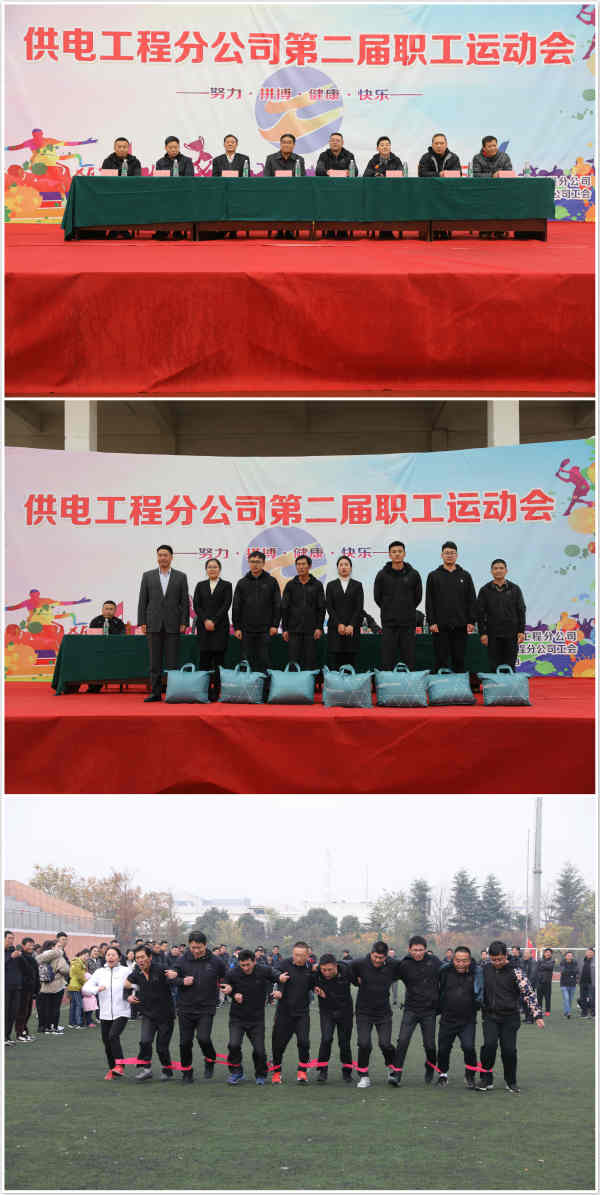為豐富職工文化生活,11月18日,公司在宋跳小學(xué)隆重舉行第二屆職工運(yùn)動會。來自公司機(jī)關(guān)及基層單位的8支代表隊171名運(yùn)動員在拔河、跳長繩、跳遠(yuǎn)、賽跑等12個比賽項目中展開激烈角逐。集團(tuán)公司工會主席劉承志出席開幕儀式并宣布比賽開始,集團(tuán)總經(jīng)濟(jì)師陳如軍出席頒獎儀式。