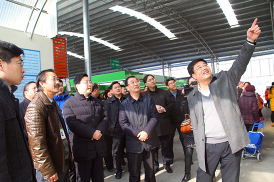 2月14日上午,市長趙曉江率市商務(wù)局、市物價局、市衛(wèi)生局等相關(guān)部門負責人,到公司巨龍市場調(diào)研節(jié)日期間市場供應(yīng)等工作。集團公司總經(jīng)理胡建明、園區(qū)事業(yè)部總監(jiān)趙萬明、公司經(jīng)理陳雨華及相關(guān)人員陪同調(diào)研。