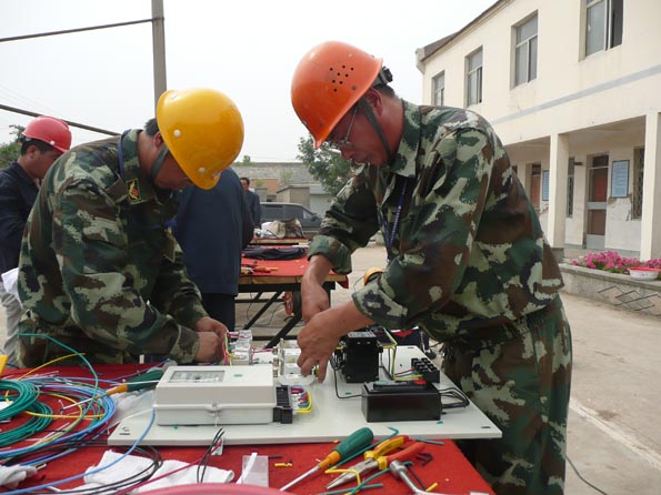 為了檢驗(yàn)一線員工的技術(shù)水平和實(shí)際操作能力,進(jìn)一步提高廣大員工立足崗位快速成才的積極性,營造 “比、學(xué)、趕、超”的學(xué)習(xí)氛圍,我公司于6月29日在臺南供電所舉辦了專業(yè)技術(shù)比武活動。這次技術(shù)比武活動分為面試考問、實(shí)際操作二部分。來自5個(gè)供電所的30名職工進(jìn)行了同場競技。比武活動項(xiàng)目有線路作業(yè)、配電安裝、變電業(yè)務(wù)操作等。線路作業(yè)賽場上,參賽隊(duì)員們頂著烈日,比上桿速度,比操作規(guī)范、比制作工藝。配電柜安裝賽場上,隊(duì)員們聚精會神,揮汗如雨,繪圖、打眼、組裝、接線……。變電業(yè)務(wù)操作現(xiàn)場,各代表隊(duì)的選手認(rèn)真揣摩,填寫設(shè)備檢修申請單、任務(wù)票、操作票,密切配合、嫻熟操作開關(guān)設(shè)備。