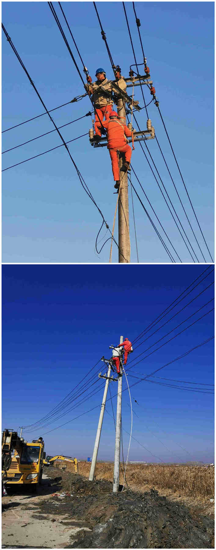 2月20日下午4點(diǎn)48分,青口供電所接到電話(huà)通知,黃沙分場(chǎng)送水道挖掘機(jī)施工碰倒10千伏養(yǎng)殖線(xiàn)電桿造成整個(gè)黃下線(xiàn)停電,請(qǐng)該所盡快派人處理。該所值班領(lǐng)導(dǎo)迅速組織線(xiàn)路工到達(dá)現(xiàn)場(chǎng),經(jīng)勘察發(fā)現(xiàn)12米3向轉(zhuǎn)角桿電桿碰斷一根,120高壓導(dǎo)線(xiàn)拉斷3根.。為了不影響其他用戶(hù)正常用電,果斷將養(yǎng)殖線(xiàn)斷路器分離,恢復(fù)黃下線(xiàn)其他線(xiàn)路正常供電。同時(shí)上報(bào)公司領(lǐng)導(dǎo),聯(lián)系機(jī)械及準(zhǔn)備搶修所需材料。當(dāng)下正值養(yǎng)殖池塘進(jìn)水期間,為了盡快恢復(fù)養(yǎng)殖線(xiàn)供電,2月21日早上7點(diǎn),搶修人員全部到位并進(jìn)行安全交底及人員分工安排。7點(diǎn)30分所有機(jī)械到位,進(jìn)行立桿、拔桿、地錨安裝、更換導(dǎo)線(xiàn)等系列工作。