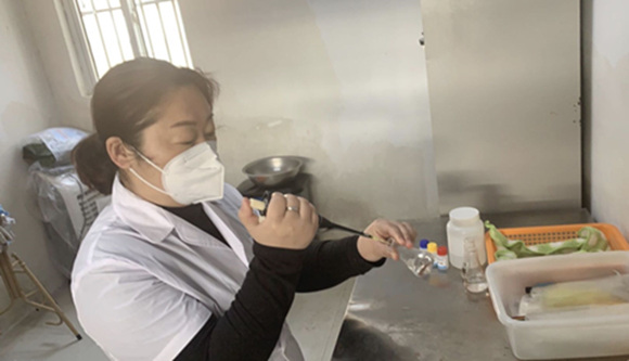 “疫情期間,每天都要隨機選取攤位進行取樣,對蔬菜、水果、生鮮肉類、干制品等的農藥殘留、非法添加物、濫用添加劑等進行檢測,檢測項目涵蓋常見的食用農產(chǎn)品風險項目,俗話說民以食為天,所以一定把好群眾的‘入口’關,讓居民吃得放心,這樣我的工作才有價值?!币咔榉揽孛钕逻_后,陸麗麗同志被巨龍農貿市場服務中心安排負責市場內的農產(chǎn)品檢測工作,她放棄春節(jié)節(jié)假日休息,即刻上陣,每日對市場攤位農產(chǎn)品進行抽檢,全力把好入市食用農產(chǎn)品質量關,維護銷售環(huán)節(jié)食用農產(chǎn)品消費安全。