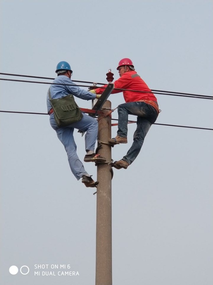 5月2日,張圩新農(nóng)村小區(qū)配電安裝工程施工現(xiàn)場,一根15米的電線桿上,榮獲集團“技能大師”稱號的王建采用實踐教學的方法,親自為新員工祁明智做登桿、金具安裝、導線捆綁等示范操作,促其盡快掌握技術(shù)要領(lǐng)。