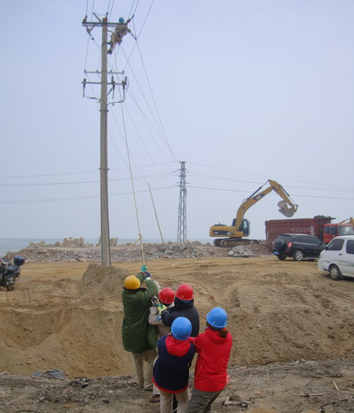 11月17日,臺(tái)北供電所全體職工放棄休息,在開發(fā)區(qū)大浦工業(yè)園區(qū)架設(shè)供電線路,保證園區(qū)建設(shè)單位按時(shí)開工。