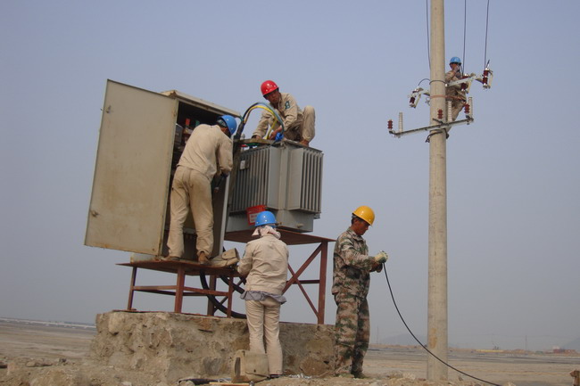金海一期二次B3區(qū)加固地基工程要求在5月10前具備全面抽真空條件。臺北供電所承擔此項電力工程,需架設10千伏線路2280米,安裝19臺變壓器及配電箱,工程總量170萬元。為使工程按時完成,維護供電所的信譽,展示自己的實力,該所細心謀劃,調配車輛,拉材備料,認真組織人力抓緊施工?,F(xiàn)場施工條件惡劣,亂石堆放,腳下無路,給施工作業(yè)帶來重重困難。職工作業(yè)汗流浹背,吃苦耐勞,無怨無悔。憑著頑強的斗志,認真地堅守的崗位,聚精會神地操作,為連云新城“一年拉框架,兩年出形象,三年基本建成”的戰(zhàn)略建設,奉獻自己的力量。