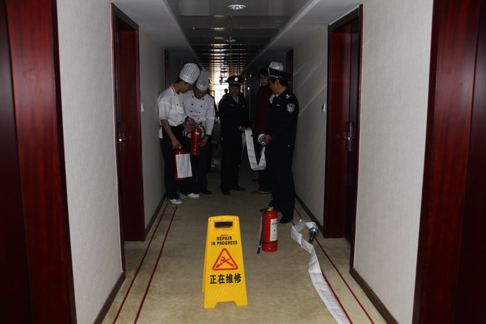 一是增強全員消防意識。要求酒店全體從業(yè)人員必須做到兩知三會,即知防火知識,知滅火常識,會報火警,會自救逃生,會協(xié)助救援。同時張貼消防安全“四個能力”的海報,發(fā)放“四個能力”建設(shè)的資料給員工熟記,在區(qū)消防部門協(xié)助下,加強對員工消防知識培訓(xùn)。