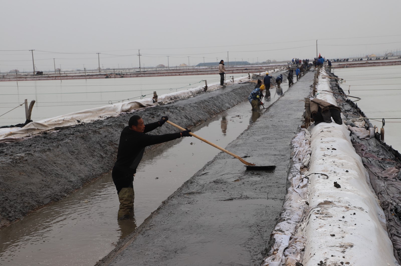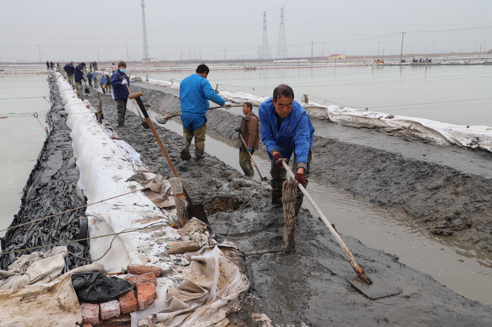 “冬準(zhǔn)工作已接近尾聲,在春扒工作開始之前,我們集全公司之力在做好保鹽保鹵工作的基礎(chǔ)上,加強(qiáng)對排鹵及回鹵溝道改造等亮化灘場文明建設(shè)工程,完善塘洼清淤工程,打造完整的生態(tài)制鹽系統(tǒng),為原鹽豐產(chǎn)豐收、提質(zhì)增效打好基礎(chǔ)?!毙潞又汽}分公司支部書記王超介紹道。