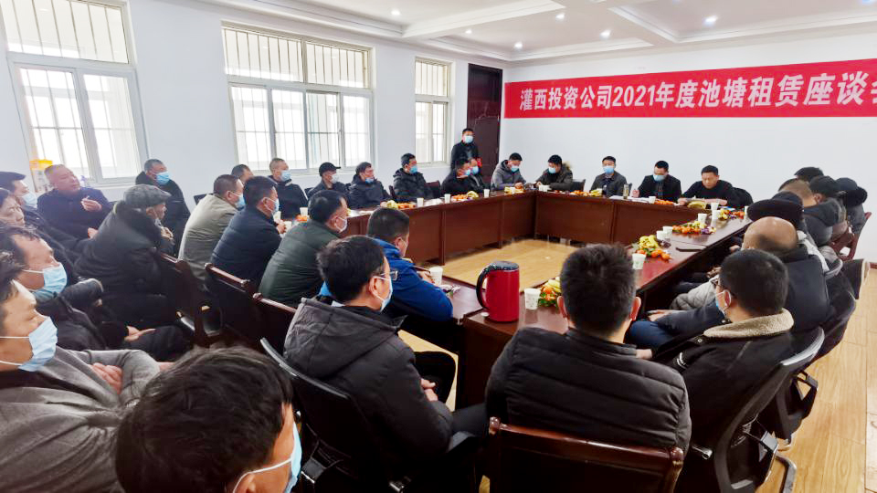 座談會上,向參會養(yǎng)殖戶介紹灌西投資公司2021年度養(yǎng)殖池塘租賃方案,并給予疑問解答。養(yǎng)殖戶們就當(dāng)前的養(yǎng)殖形式、養(yǎng)殖經(jīng)驗(yàn)進(jìn)行了交流,大家暢所欲言,互相學(xué)習(xí)。