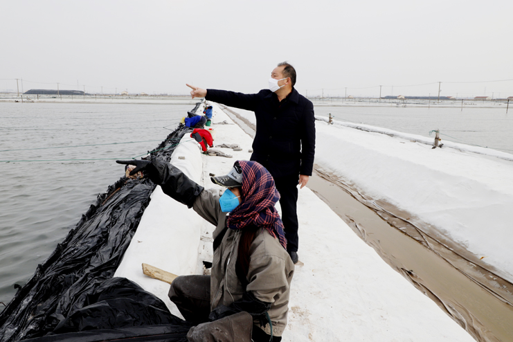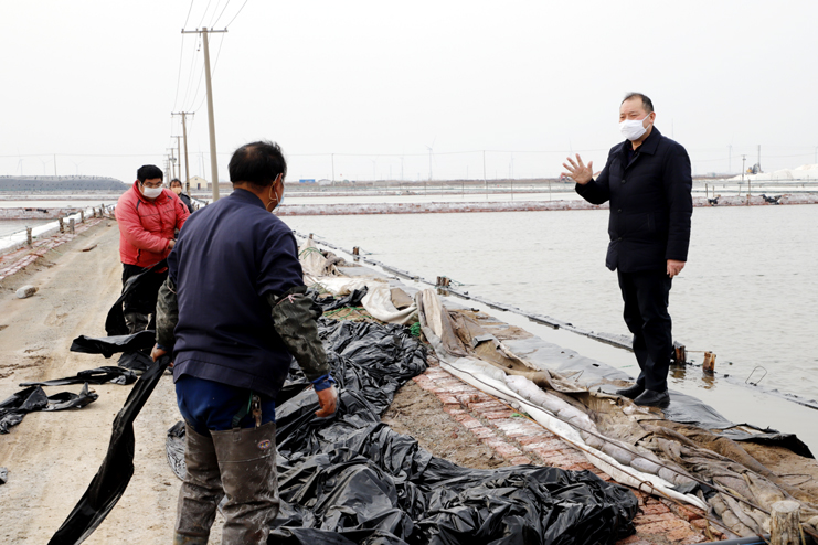 李國文首先來到日曬制鹽公司生產(chǎn)灘頭,現(xiàn)場察看復(fù)工復(fù)產(chǎn)情況。徒步灘頭,有的在補(bǔ)塑布、有的在修整廩基、有的在更換塑布,每個班組都在搶抓時間準(zhǔn)備春扒工作。隨后李國文先后前往西旺養(yǎng)殖池塘、明威田頭、宵洋物流碼頭,每到一處都詳細(xì)詢問職工口罩、消毒酒精等防護(hù)物資夠不夠用,有沒有外地回來的員工,并叮囑員工少接觸外地回來人員,錯開上下班時間,外出要帶口罩,保護(hù)好自己才能更好的為企業(yè)創(chuàng)造效益。