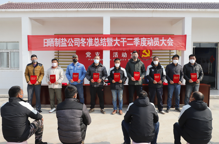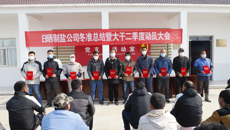 3月18日,日曬制鹽公司在新河制鹽分公司生產(chǎn)灘頭召開冬準(zhǔn)總結(jié)暨大干二季度動(dòng)員大會,黨委書記、董事長、總經(jīng)理李國文主持會議并講話,為完成2020年各項(xiàng)生產(chǎn)工作再動(dòng)員、再發(fā)力、再部署、再出發(fā),幫失去的時(shí)間搶抓回來。常務(wù)副總經(jīng)理古浩光對冬準(zhǔn)工作進(jìn)行了全面總結(jié),并對二季度工作進(jìn)行了安排部署。黨委副書記、紀(jì)委書記、工會主席王宏宣讀了冬準(zhǔn)勞動(dòng)競賽表彰決定和大干二季度勞動(dòng)競賽方案。