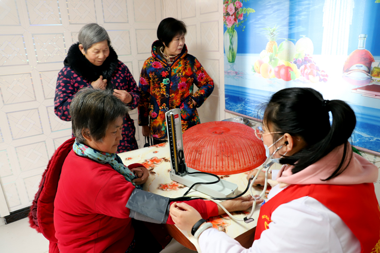 志愿者服務隊上午共走訪了22戶居民家庭,為58位居民進行了身體檢查,并發(fā)放和講解高血壓病癥知識和用藥常識。志愿者們耐心細致地為居民進行身體檢查,特別是走訪空巢老人家庭,與老人交談,拉家常,給老人以關愛。