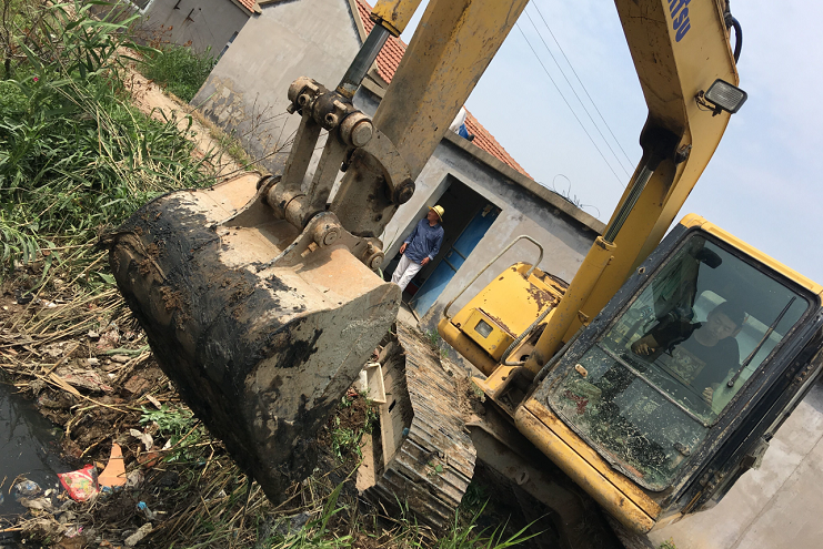 "各項防汛工作中,當數(shù)中二圩排水道堵塞問題最為突出,由于之前的燕尾港鎮(zhèn)拆遷,大量拆遷戶涌入灌西鹽場中二圩地區(qū)生活,違建現(xiàn)象嚴重,各種建筑垃圾和白色垃圾隨處堆放,排水系統(tǒng)深受其害。為方便職工群眾生活起居,灌西公司對中二圩地區(qū)排水道進行疏通清理,以便安度汛期。”清理現(xiàn)場,," 防汛辦公室主任楊善兵說道,只見大小挖機全力施工,對于大挖機不好進入的居民區(qū)內(nèi)部小溝小道則由小挖機專門清理,對于復(fù)雜地形機械難以進入的地方只能人工清理,務(wù)求做到全面徹底,不留死角。