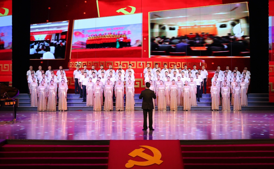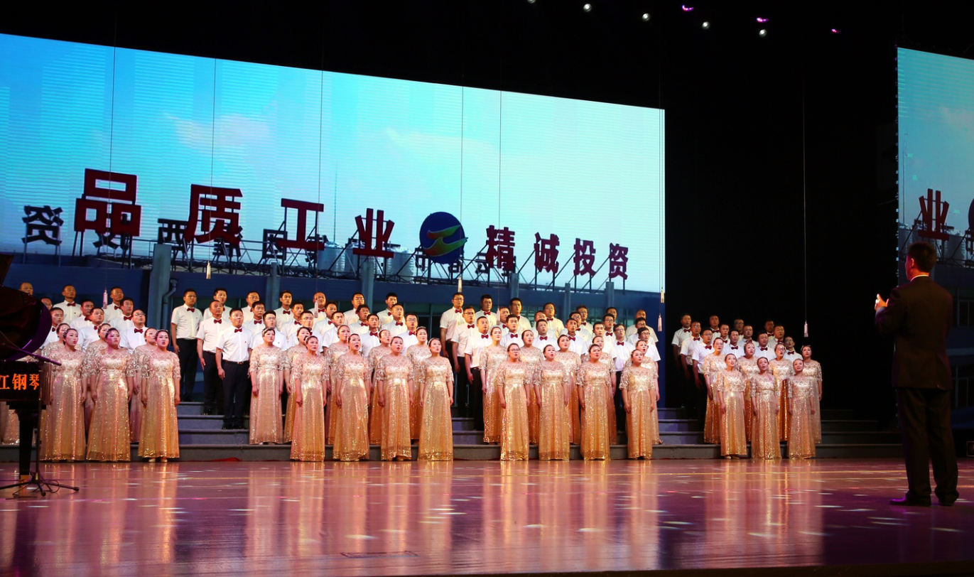“風(fēng)在吼,馬在叫,黃河在咆哮……”嘹亮的歌聲在市藝術(shù)中心舞臺(tái)上響起, 6月28日下午,集團(tuán)公司2019年“感黨恩、頌祖國(guó)、贊工投”大合唱比賽在此隆重舉行,灌西公司百人合唱團(tuán)獲得二等獎(jiǎng),集團(tuán)黨委書記、董事長(zhǎng)楊龍為灌西合唱團(tuán)頒發(fā)獎(jiǎng)杯。