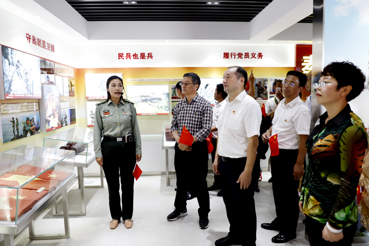 上午9點10分,隨著百名人員的陸續(xù)登島,往日寧靜的開山島突然熱鬧起來,紅旗飄舞,歌聲飛揚。沿著山梯而上,重走全國“人民楷模”、“最美奮斗者”、優(yōu)秀共產(chǎn)黨員王繼才同志生前的巡島路線,追尋英模足跡;參觀“開山島夫妻哨所事跡展示館”,瞭望臺、生活間和營房,實地感受王繼才夫婦在環(huán)境異常惡劣的開山島上,以島為家、與海為鄰,舍家為國、不畏艱險,32年如一日堅守海防事業(yè)的奉獻(xiàn)精神;在開山島最高處的國旗廣場上,黨員們一起觀看守島民兵升國旗,組織開展重溫入黨誓詞儀式,教育引導(dǎo)全體黨員不忘初心,牢記使命。