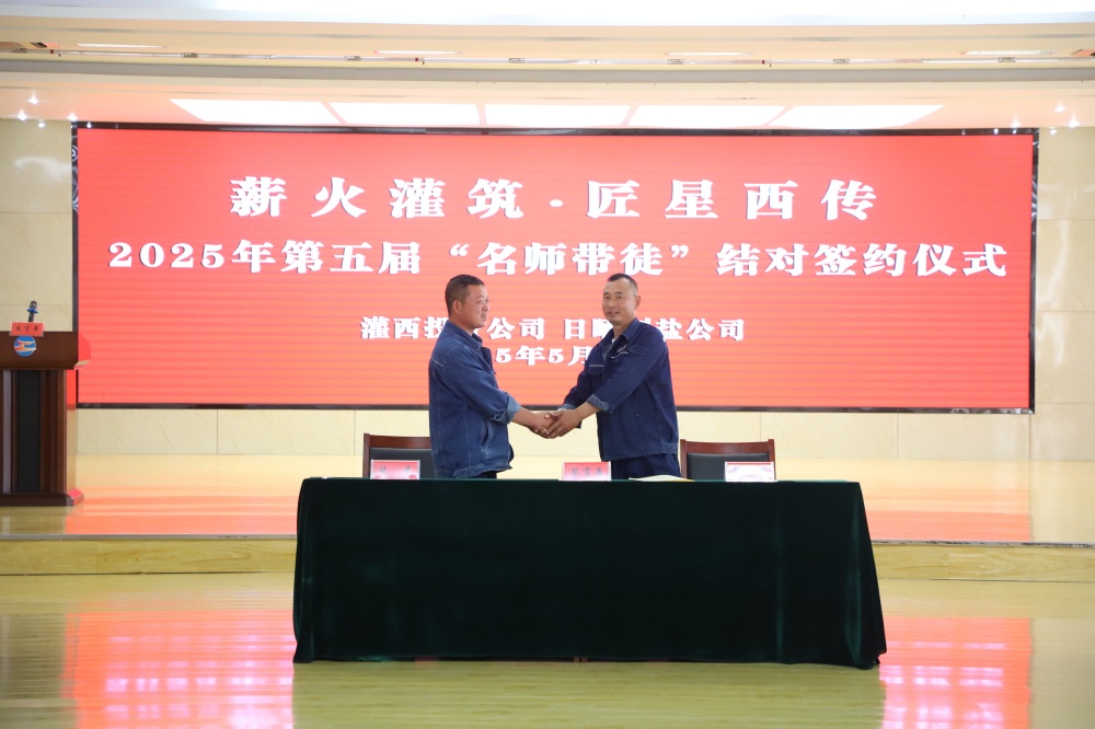 5月27日,在“薪火灌筑?匠星西傳”第五屆“名師帶徒”結(jié)對簽約儀式現(xiàn)場,師傅們眼中飽含期待,徒弟們臉上寫滿憧憬。隨著結(jié)對名單一一宣讀,公司中堅(jiān)力量鄭重接過傳承的重任,與青年員工互贈拜師茶、簽訂師徒協(xié)議,每一個環(huán)節(jié)都充滿儀式感,象征著“名師帶徒”的接力棒正式傳遞。