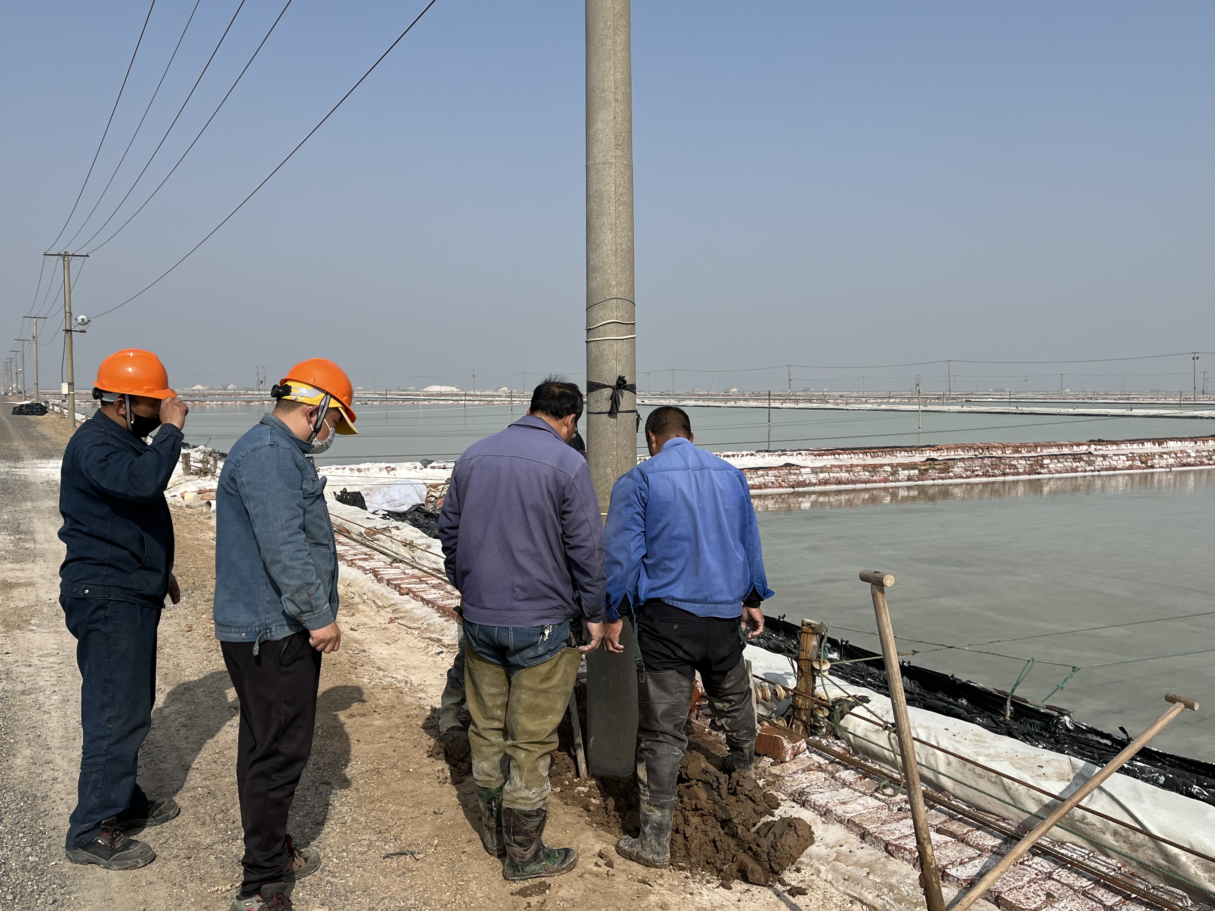經(jīng)過多年的風吹雨打,新河制鹽公司四班大池道邊上的電線杠出現(xiàn)大面積傾斜現(xiàn)象,嚴重影響安全生產(chǎn)。9日上午,公司安全負責人趙斯忠,組織部分后勤及班組人員一起為整改工作出點子,解決本次隱患整改的難點。