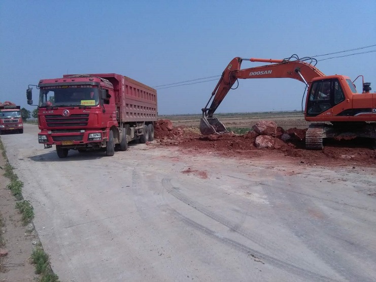 坐落在西旺水產(chǎn)公司農(nóng)田區(qū)域內(nèi)的其中的8個(gè)風(fēng)力發(fā)電機(jī)建設(shè)項(xiàng)目,經(jīng)過公司相關(guān)人員的協(xié)調(diào)和建設(shè)方人員的共同努力,項(xiàng)目建設(shè)的各項(xiàng)工作進(jìn)展順利。日前,項(xiàng)目建設(shè)已正式進(jìn)入項(xiàng)目施工環(huán)節(jié)。圖為運(yùn)載車輛進(jìn)行鋪建便道施工工程中(西旺宣)
