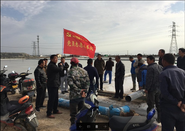 該公司八名黨員班長為展示支部黨員突擊隊(duì)作用,增強(qiáng)黨員標(biāo)桿作用和服務(wù)意識(shí),將鮮紅的支部黨員志愿服務(wù)隊(duì)旗插在了零班的灘頭。(新河制鹽 邱利民)