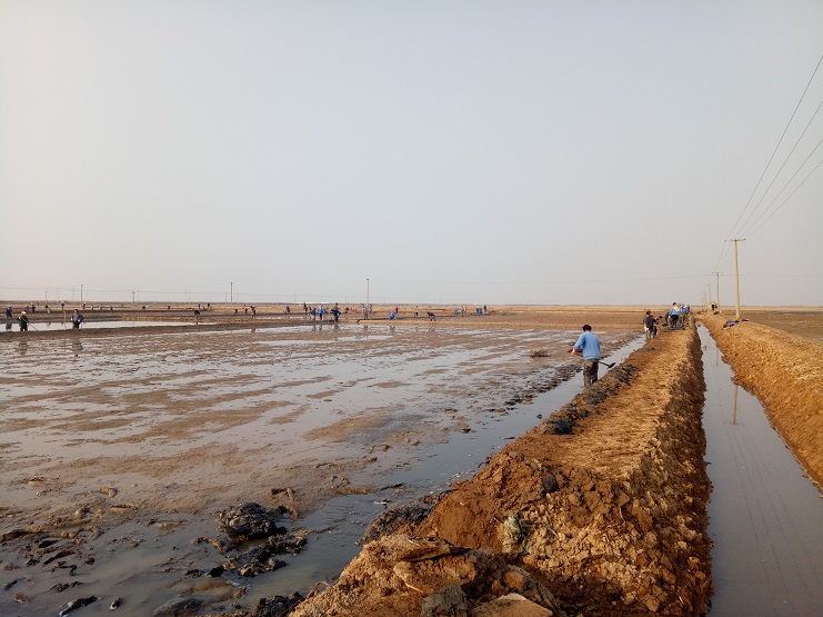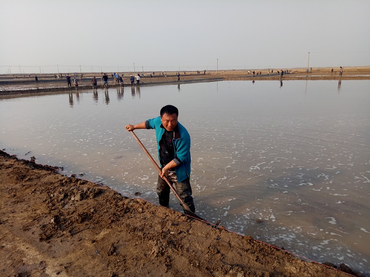 近日,實(shí)業(yè)公司制鹽分公司海鹽基地,一班班組灘場改造呈現(xiàn)出一片繁忙的景象。日曬制鹽新河制鹽分公司、埒南制鹽分公司等兄弟單位近兩日,輪流調(diào)動(dòng)數(shù)百余人參加實(shí)業(yè)公司海鹽基地?fù)茰献鲔髸?huì)戰(zhàn)?,F(xiàn)場場面十分壯觀,大家干得熱火朝天:有挖泥澆水的、踩泥打堰的、抹埝找平的......員工們齊心協(xié)力地打好這次攻堅(jiān)戰(zhàn)。本次共計(jì)撈溝做埝近四千米。實(shí)業(yè)公司全體員工對(duì)兩公司的辛勤勞動(dòng)給予了贊許和由衷的感謝。(史祥燕)