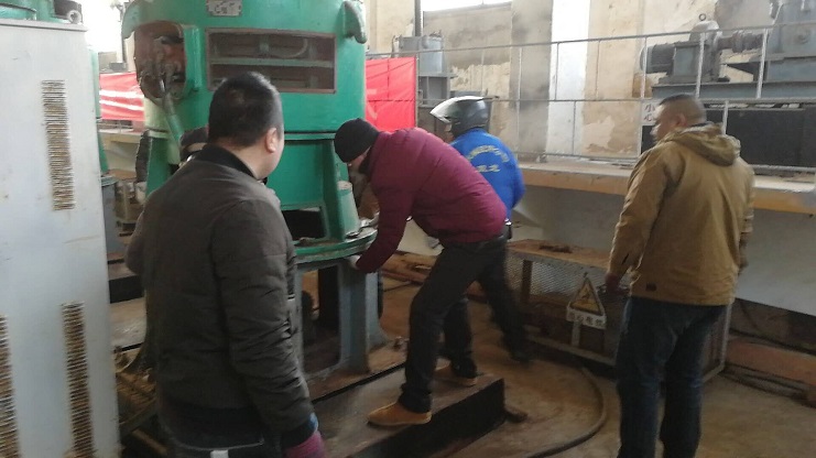 2018年3月10日上午7點(diǎn),蘇南帶領(lǐng)機(jī)電工修理六圩閘5號(hào)機(jī)組。(現(xiàn)在池塘要水高峰,機(jī)組長(zhǎng)時(shí)間運(yùn)作導(dǎo)致多處螺絲脫落和松動(dòng))。(蘇南)