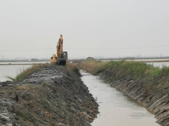 為了保障養(yǎng)殖正常生產(chǎn),營造良好的投資環(huán)境。近期,養(yǎng)殖服務(wù)公司配合投資發(fā)展部對部分淤塞嚴(yán)重,長滿雜草的海水養(yǎng)殖池塘進、排水渠道進行疏通。圖為南翼綠化工程公司正在用挖掘機械理順進、排水渠道。(養(yǎng)殖服務(wù))