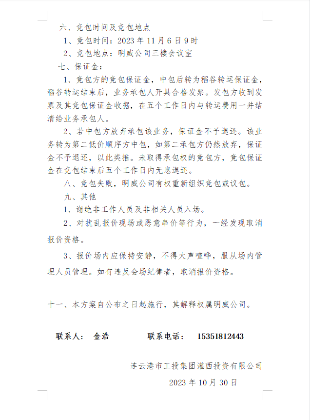 2023年灌西投資公司秋收稻谷轉運 業(yè)務發(fā)包二次公告