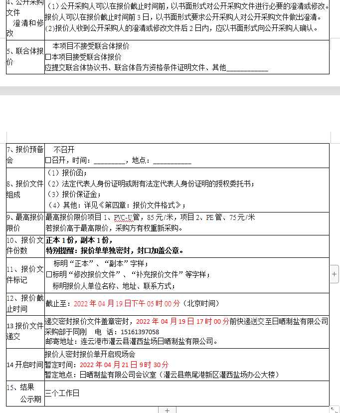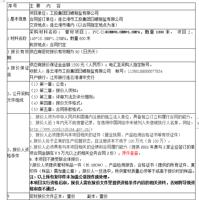 報價保證金接收人:連云港市工投集團(tuán)日曬制鹽有限公司。