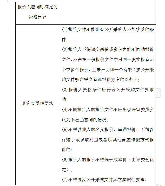 2、評審委員會將根據(jù)以下標(biāo)準(zhǔn)對各報價人進(jìn)行初步評審,有一項不符合要求的,作否決報價處理,不進(jìn)入詳細(xì)評審。