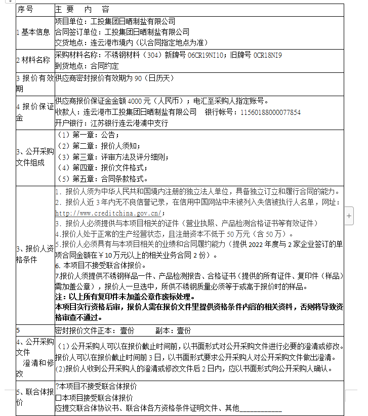 報(bào)價(jià)保證金接收人:連云港市工投集團(tuán)日曬制鹽有限公司。
