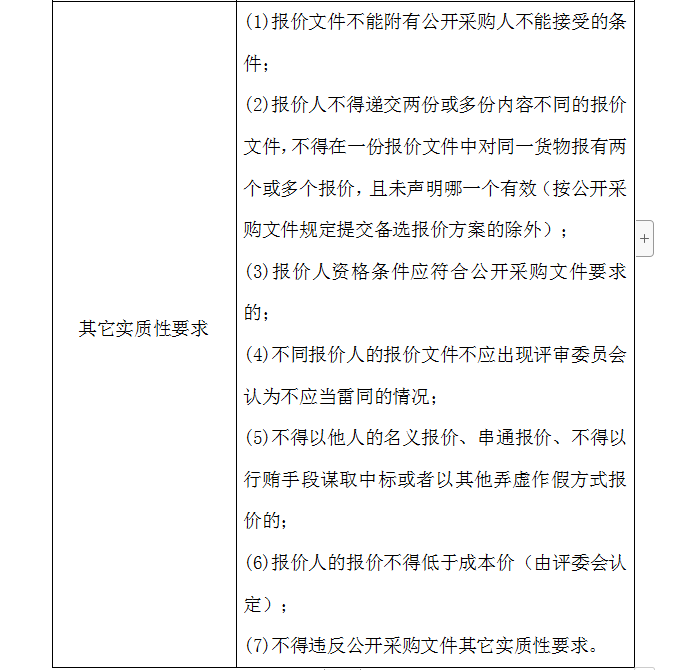 1、初步評(píng)審(符合性審查)是指評(píng)審委員會(huì)審查每個(gè)報(bào)價(jià)人及每一報(bào)價(jià)文件是否對(duì)公開采購文件提出的所有實(shí)質(zhì)性要求和條件做出響應(yīng),有無顯著的差異或保留。評(píng)審委員會(huì)將僅對(duì)在實(shí)質(zhì)上響應(yīng)公開采購文件要求的合格報(bào)價(jià)(有效)文件進(jìn)行評(píng)估和比較。