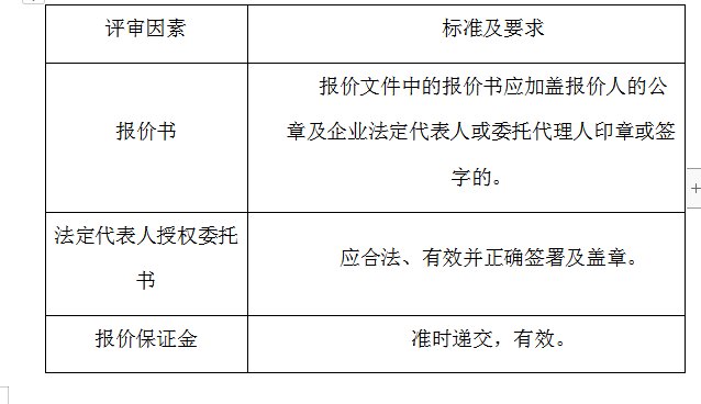 2、評審委員會將根據(jù)以下標(biāo)準(zhǔn)對各報價人進(jìn)行初步評審,有一項不符合要求的,作否決報價處理,不進(jìn)入詳細(xì)評審。
