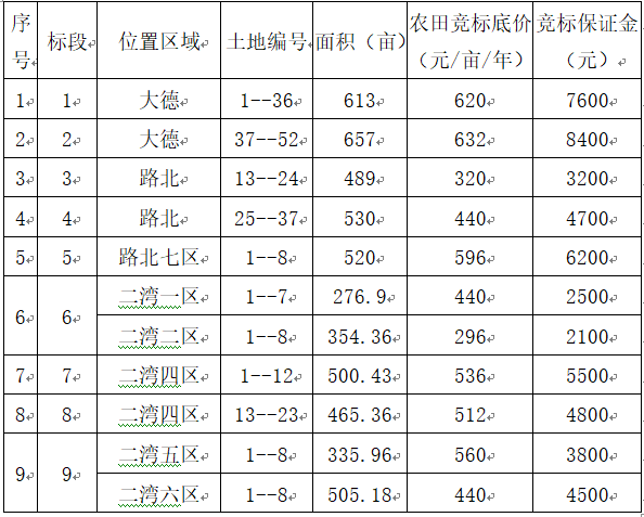 一、競標(biāo)農(nóng)田標(biāo)段、位置、面積、競標(biāo)底價、競標(biāo)保證金: