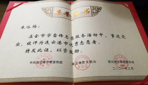 參加疫情防控志愿服務(wù)以來(lái),朱詠梅一天都沒(méi)有休息,已為超過(guò)2萬(wàn)名旅客檢測(cè)體溫。由于事跡突出,在全市學(xué)雷鋒志愿服務(wù)活動(dòng)中,被評(píng)為連云港市優(yōu)秀志愿者。工作期間,渴了不敢喝水,餓了就吃泡面,雖然很辛苦,但是她覺(jué)得很自豪,她說(shuō):“我是一名預(yù)備黨員,也是一名國(guó)企職工,比起那些奮戰(zhàn)在疫情防控一線的醫(yī)務(wù)人員,我做的太少了;當(dāng)前,全國(guó)人民都投入到新冠肺炎疫情防控工作中來(lái),我只是為防控工作貢獻(xiàn)了自己的微薄的力量,我相信只要我們團(tuán)結(jié)一心、眾志成城,就一定能早日戰(zhàn)勝疫情,早日打贏這場(chǎng)沒(méi)有硝煙的戰(zhàn)爭(zhēng)!(凌家佳)