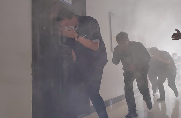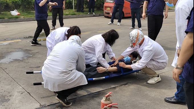 演練分為火災(zāi)應(yīng)急疏散、火災(zāi)應(yīng)急救援、有限空間應(yīng)急救援三個部分展開。在火災(zāi)應(yīng)急疏散演練中,設(shè)定三樓會議室為模擬火災(zāi)現(xiàn)場,人員2分鐘內(nèi)從指定逃生路線規(guī)范、有序、迅速撤離到了安全地帶;火災(zāi)事故應(yīng)急救援和有限空間應(yīng)急救援分別模擬紙箱庫著火及地龍有害氣體窒息,分信息報告、啟動應(yīng)急響應(yīng)、現(xiàn)場警戒、醫(yī)療救護(hù)、事故搶險等各處置環(huán)節(jié),整個演練緊張有序,過程流暢,達(dá)到檢驗應(yīng)急預(yù)案的可行性和提高應(yīng)急救援人員的應(yīng)急處置能力的效果,為完善我公司應(yīng)急預(yù)案提供實踐依據(jù)。