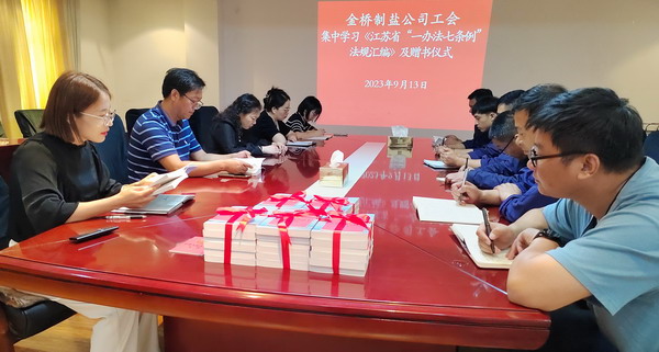為落實(shí)市總及集團(tuán)工會(huì)相關(guān)要求, 9月13日,我公司工會(huì)舉辦集中學(xué)習(xí)《江蘇省“一辦法七條例”法規(guī)匯編》活動(dòng)及贈(zèng)書儀式。公司工會(huì)負(fù)責(zé)人,各分會(huì)、人資部門、安全部門負(fù)責(zé)人,部分職工代表參加。