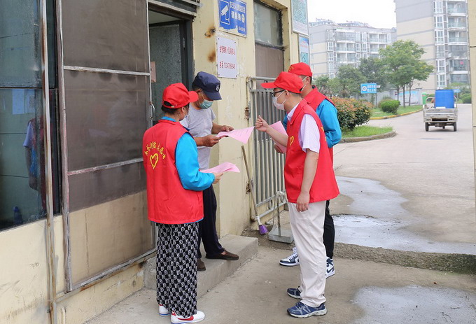 組織志愿者到板橋社區(qū)內(nèi)的飯店、居民區(qū)等地分發(fā)《疫情防控倡議書》和疫情防控知識(shí)手冊(cè)