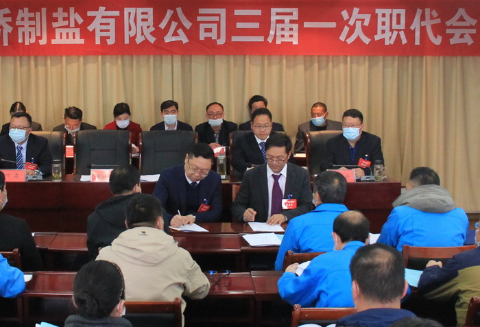 大會(huì)簽訂了《2021年度集體合同》、《2021年度經(jīng)營(yíng)認(rèn)標(biāo)責(zé)任書(shū)》,與會(huì)代表認(rèn)真審議通過(guò)了總經(jīng)理工作報(bào)告,通過(guò)了大會(huì)決議、有關(guān)方案和意見(jiàn)。加工鹽車間、包裝鹽車間、銷售部依次作了表態(tài)發(fā)言。大會(huì)表彰了第九屆“金橋杯”勞動(dòng)競(jìng)賽、2020年“大干四季度”勞動(dòng)競(jìng)賽的先進(jìn)集體和先進(jìn)個(gè)人以及2020年度“金橋工匠”。(金宣)