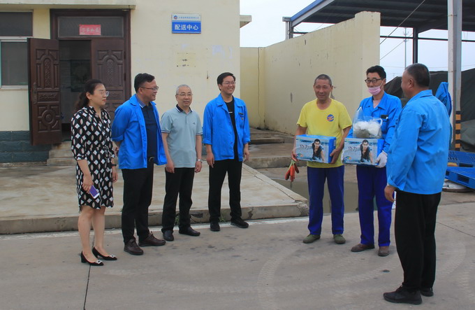 6月24日,我公司工會開展夏季“送清涼”活動,黨委副書記、工會主席曹開明、副總經(jīng)理張學(xué)峰和田磊一行,為高溫下的一線職工送去了綠豆、白糖、飲料、茶葉等防暑降溫品。