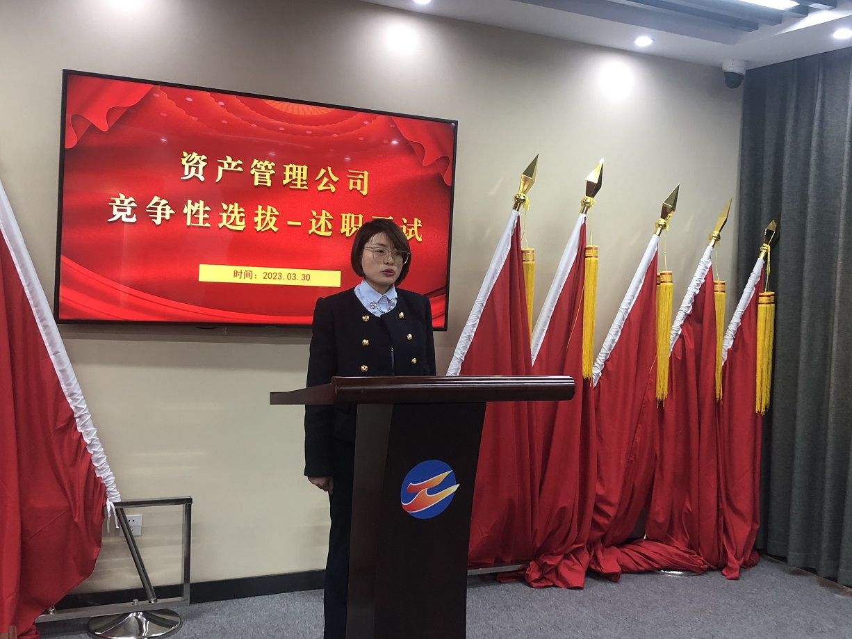 資產(chǎn)管理公司制定了《“競爭性選拔”實施方案》。前期通過自愿報名、宣傳動員、資格審查等環(huán)節(jié),共有7名候選人進入述職面試環(huán)節(jié)。面試采取“演講+答辯”的方式進行,既考核競聘者的語言表達、臨場應(yīng)變和邏輯思維等能力,又檢驗競聘者的業(yè)務(wù)水平和崗位匹配性。競聘現(xiàn)場,應(yīng)聘人員通過抽簽輪流進行面試,展示各自風(fēng)采,氣氛緊張而又激烈。評委組根據(jù)競聘者臺上的演講內(nèi)容及答辯情況現(xiàn)場打分。