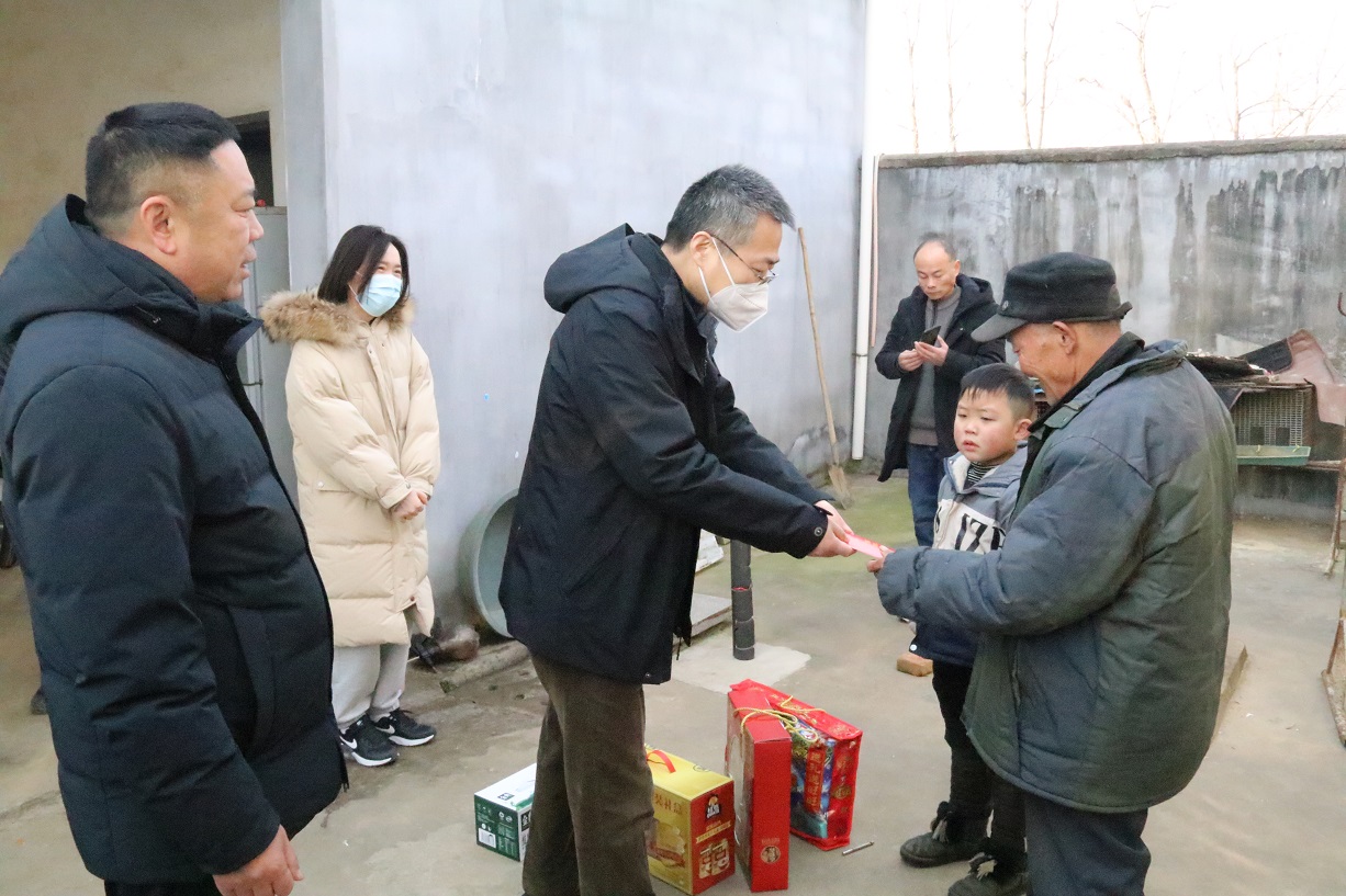 在小莒城村支部書記王官起等人的陪同下,徐兵一行為深入每戶困難群眾家中,查看他們的生活狀況,鼓勵(lì)他們樹立克服困難的決心和希望,隨后將慰問金及節(jié)日禮包等慰問品送到苦難群眾手中,同時(shí)向他們致以節(jié)日的問候和祝福,把國企人的關(guān)愛送到他們身邊。