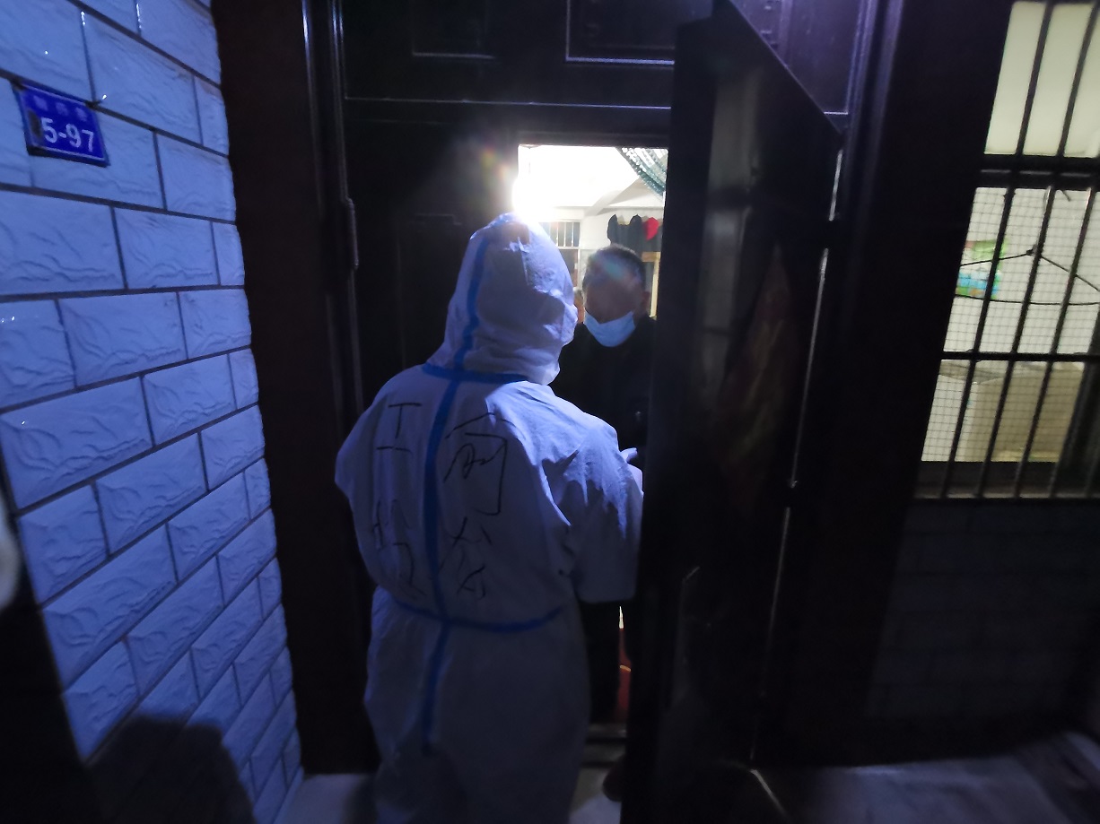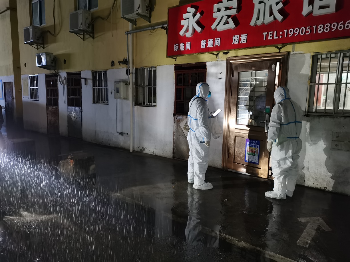 “終于完成任務(wù)了”,看著已被雨水打濕的安裝名單,工投金融板塊的三名志愿者長長地舒了一口氣。志愿服務(wù)隊進駐當天就按照社區(qū)的統(tǒng)一安排,立即開展了門磁安裝門磁等一線工作。由于新橋社區(qū)是本輪疫情最早的“爆發(fā)點”,且轄區(qū)內(nèi)多為老舊小區(qū),街巷縱橫、門牌號排列混雜,群租、合租情況普遍,外來務(wù)工人員較多,給安裝工作造成了較大難度,恰巧當天夜里下起了大雨,雨水遮擋視線,讓原本復(fù)雜的工作更添新的困難。志愿者一邊電話聯(lián)系,一邊用手電查找街邊的門牌,經(jīng)過3個半小時的摸排,終于完成了全部的安裝任務(wù)。