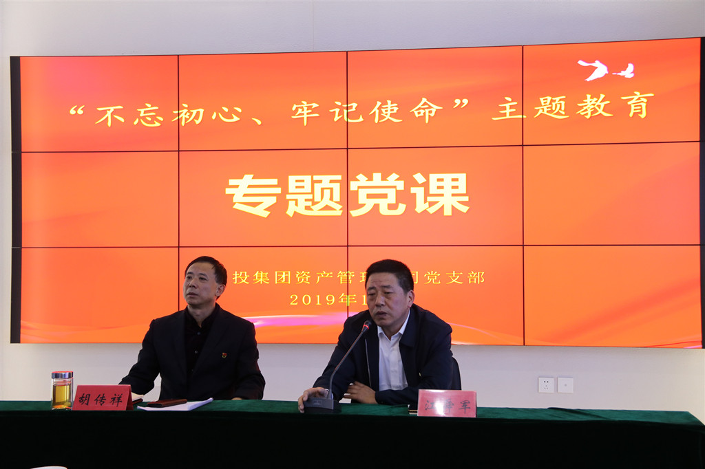 | 為教育引導(dǎo)黨員干部不忘初心,牢記使命,擔(dān)當(dāng)作為,開拓創(chuàng)新,奮力譜寫金融工作新篇章,10月10日下午,資產(chǎn)管理公司黨支部舉行“不忘初心、牢記使命”主題教育黨支部書記講黨課活動,資產(chǎn)管理公司黨支部書記、董事長胡傳祥同志講授“初心不改,擔(dān)當(dāng)作為,創(chuàng)造無愧于時代的工作業(yè)績”主題黨課,集團黨委第一指導(dǎo)組同志到會指導(dǎo)。