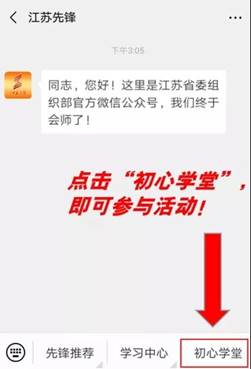 | 各單位黨群工作部: 為引導(dǎo)廣大黨員干部認真學習《習近平談治國理政》第三卷,推動黨的科學理論“飛入尋常百姓家”,“江蘇先鋒”公眾號特開辟“初心學堂”小程序,請組織本單位黨員干部8月12日—10月30日登錄“初心學堂”小程序一起聽音頻、讀原著、悟原理?。ㄕ埜魑稽h員登陸后,單位名稱統(tǒng)一填寫為:連云港市工業(yè)投資集團有限公司) 第一步:關(guān)注“江蘇先鋒”公眾號