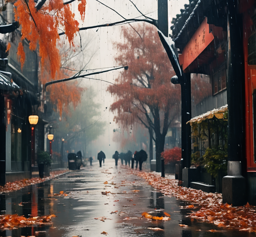 雨滴細(xì)密確冰冷而清澈,吹到臉上、手上,冷得刺骨。我連忙把衣服裹得更緊些,但這寒冷似乎已經(jīng)滲透到了骨子里。路上的人們行色匆匆,似乎都想盡快逃離這場雨。