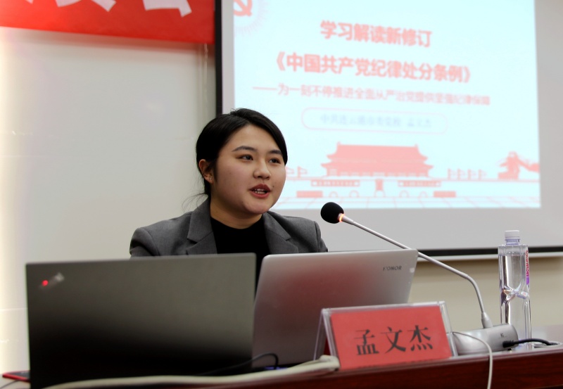 學(xué)《條例》,明紀(jì)律。特邀請市委黨校孟文杰老師,對新修訂的《中國共產(chǎn)黨紀(jì)律處分條例》進(jìn)行專題輔導(dǎo)。孟老師從深刻理解《條例》修訂的重要亮點(diǎn)、準(zhǔn)確把握《條例》修訂的主旨要義、切實(shí)抓好《條例》的貫徹執(zhí)行三個(gè)方面作了精彩解讀,并堅(jiān)持理論密切聯(lián)系實(shí)際,結(jié)合與修改內(nèi)容相關(guān)的案例及視頻,提醒廣大黨員干部嚴(yán)于律己、防微杜漸,讓全體黨員干部受益匪淺。