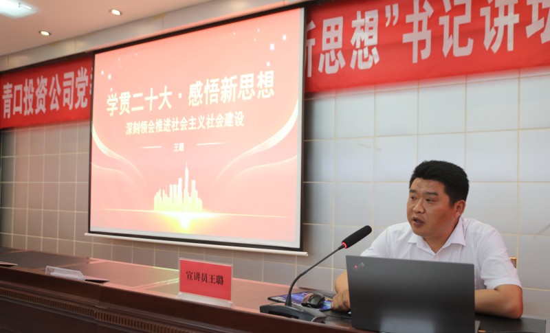 為深入學(xué)習(xí)宣傳貫徹黨的二十大精神,通過“學(xué)”精神、“講”精神、“用”精神,迅速把廣大黨員干部的思想和行動統(tǒng)一到黨的二十大精神上來,5月16日下午,青口投資公司“學(xué)貫二十大 感悟新思想”書記講壇火熱開講。公司在家領(lǐng)導(dǎo),基層黨支部書記、分會主席以及機關(guān)全體管理人員參加。