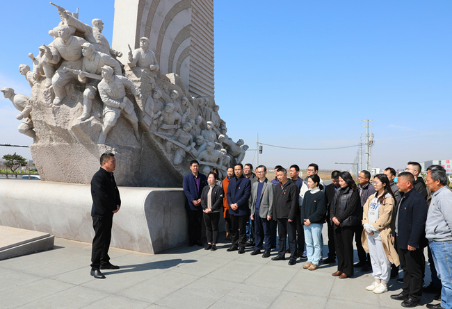 在紀念碑前,黨委書記史祥平同大家一起詳細回顧了中國共產(chǎn)黨的光輝歷史。他指出,這次活動是一次感悟黨史、砥礪初心使命的黨史學(xué)習(xí)教育,要深刻領(lǐng)悟今天的幸福生活來之不易,弘揚英烈精神,賡續(xù)精神血脈,進一步砥礪優(yōu)良作風(fēng),彰顯擔(dān)當(dāng)之能,鑒往知來、繼往開來,感恩先輩先烈的奮斗犧牲,珍惜來之不易的發(fā)展局面,保持“拼、搶、實”的狀態(tài)和作風(fēng),主動作為、奮發(fā)有為、擔(dān)當(dāng)善為,為公司高質(zhì)量發(fā)展作出更大貢獻。(青 宣)