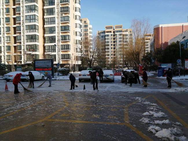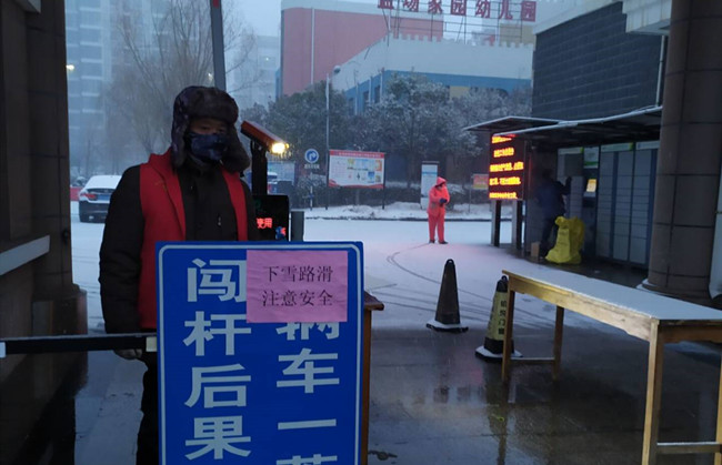 作為公司職工居住的鹽場家園小區(qū),按照金海社區(qū)要求,執(zhí)行封閉管理,每戶只發(fā)一個通行證,除門衛(wèi)外,管理人員全部參與輪流值班。特殊天氣時,大門的看守更加嚴格與認真,值班人員對過往的人員登記、量體溫,確保沒有問題后才給與放行。大雪洋洋灑灑,清晨的鹽場家園銀裝素裹,泰祥物業(yè)的工作人員,佩戴好口罩,拿著掃帚彎著腰,揮動手中的工具在清理積雪。雪已結(jié)成冰,但他們不畏寒冷,堅毅有力,鏟掉冰凍。寒冷的天氣,絲毫沒有影響大家的熱情,先主路后支路,逐漸掃出一條整潔的路面,疫情面前,泰祥物業(yè)人用行動用嚴格用責(zé)任溫暖了業(yè)主的心。