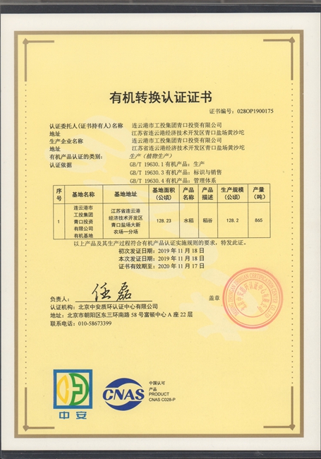11月25日上午,我公司種植的“南粳9108”有機(jī)大米經(jīng)過(guò)嚴(yán)格認(rèn)真的檢測(cè)和審核,獲得北京中安質(zhì)環(huán)認(rèn)證中心頒發(fā)的有機(jī)轉(zhuǎn)換認(rèn)證證書。